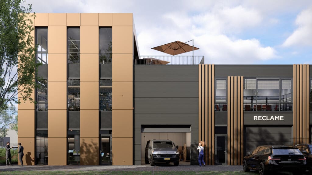 Ja, maatwerk is in overleg mogelijk. De units worden opgeleverd met een basisindeling, maar je kunt eigen wensen meegeven voor scheidingswanden, extra voorzieningen of aanpassingen aan de kantoorruimte op de verdieping. Neem tijdig contact op om jouw wensen te bespreken, zodat deze nog meegenomen kunnen worden in de bouw.